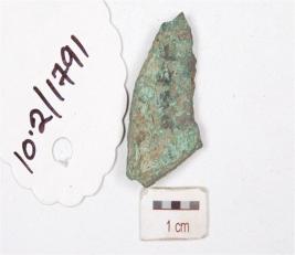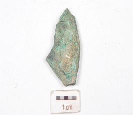 | Description / विवरण | Indeterminate copper object, green incrustation visible on surface and partly broken. |
