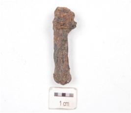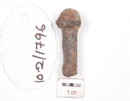 | Description / विवरण | Fragment of indeterminate copper object, circular on top and cross section. |