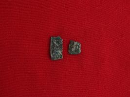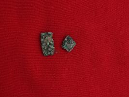 | Description / विवरण | Trench BX-1, LxB-D 3.50 mtrs x 3 mtrs -4.10 mtrs at V, Stratum Pit 1A There are two pieces of copper alloy material with a hard patina deposited over it. The surface of both the pieces is uneven and rough. The surface has dark green brown appearance. It seems both these pieces are broken from a single object. |