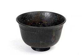 | Description / विवरण | One bowl inscribed in arbic script depicting Quran Ayats as stated in the purchase statement. Bowl broken in the center and inscription has also been carved inside the bowl. |