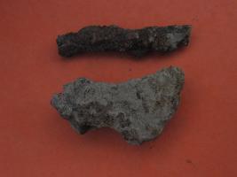 | Description / विवरण | Trench SGL-2 , LxB-D IV .52 to VII x 0.45 to 3.25 - 1.63 to 1.96 IV, Stratum Layer 4 These are two iron pieces. One piece seems like nail. Surface of the objects is rough, craggy, rusty and uneven. Colour of the objects is rusty brown. |