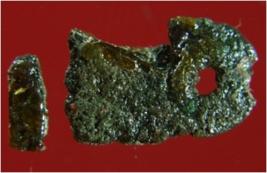 | Description / विवरण | Trench B-3, LxB-D 0.60s x 4 mtrs - 1.55 mtrs at V, Stratum Layer 9 It is a copper piece. The surface of object is uneven. The colour of object is blackish. |