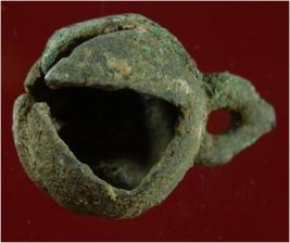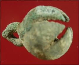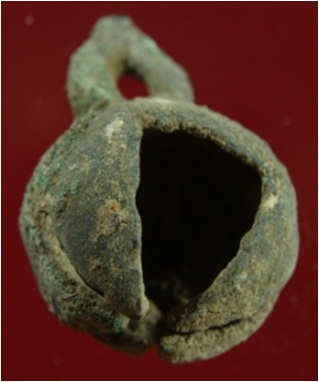 Trench A-9,LxB-D 4 mtrs x 2 mtrs - 2.35 mtrs B peg ZA9 It s a bell made of copper, of green colour and rough surface. Hard patina is present on it.
