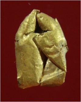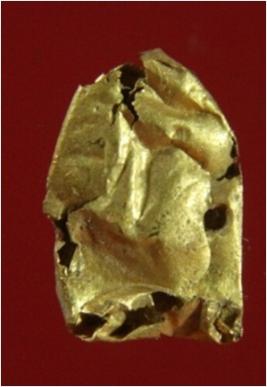 | Description / विवरण | It is a golden foil with uneven shape and surface. Appearance is golden and deposition of soft patina. |