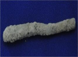 | Description / विवरण | Trench SGL-3, Length VIII0 to X0, Breadth 0.50 to 2.50 m, Depth 0.59 to 0.61VIII0, Stratum Layer 2 It is an antimony rod of copper alloy. It seems to be used as tool. Surface is rough and uneven. Colour of the object is greenish brown. |