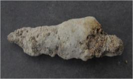 | Description / विवरण | Trench D, L x B -D, XXII to XXIV x 0.50 to 3 Mtrs- 5.362 to 6.05 MBS XXV mtrs, Stratum layer35. It s an iron piece of uneven shape. Badly damaged and rusted. Dust and dirt is deposited on it. Appearance is muddy brown. |