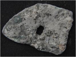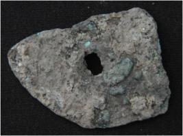 | Description / विवरण | Trench CW-2, Stratum Layer 5 It s a copper coin that has deposition of dirt and patina over it and a hole in its center. |