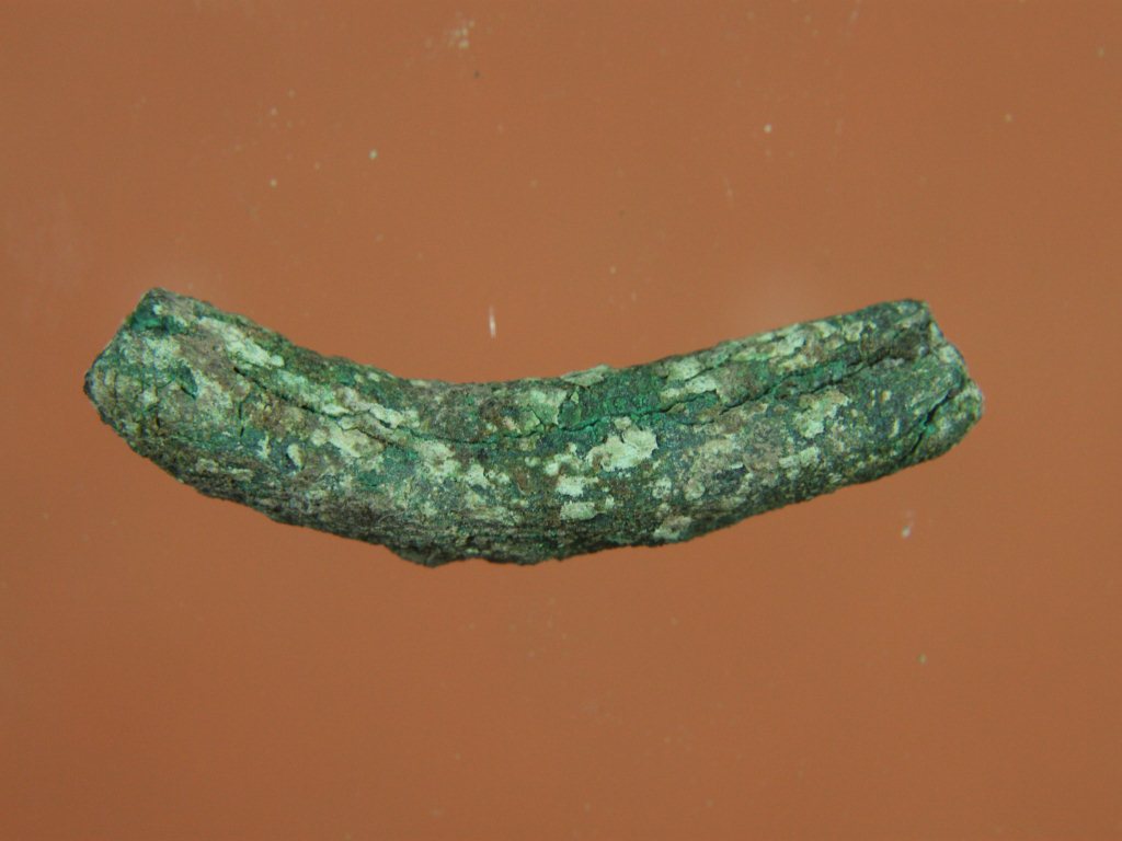 Trench ZA1, Qdt-4, Depth 5.60 mtrs, B peg B1, Stratum Layer 18 This is piece of copper alloy. Hard patina with heavy deposition of dust and dirt.Cracks on its surface. Appearance is of green colour.
