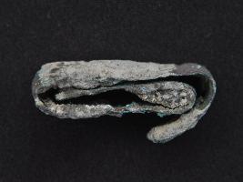 | Description / विवरण | Trench ZA-9, Depth 4.35 mts, Below peg ZA-9, Stratum Pit no. 5 sealed by Layer 12 This is a copper piece, metal strip folded. Hard patina with heavy deposition of dust and dirt. Appearance is of grey and muddy colour. |