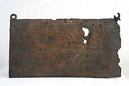 | Description / विवरण | Rectangular plate having two sections. There are four human and one animal figures carved in the upper section. While lower has got nine human figures. There is a big hole in the upper section and left edge is broken too. |