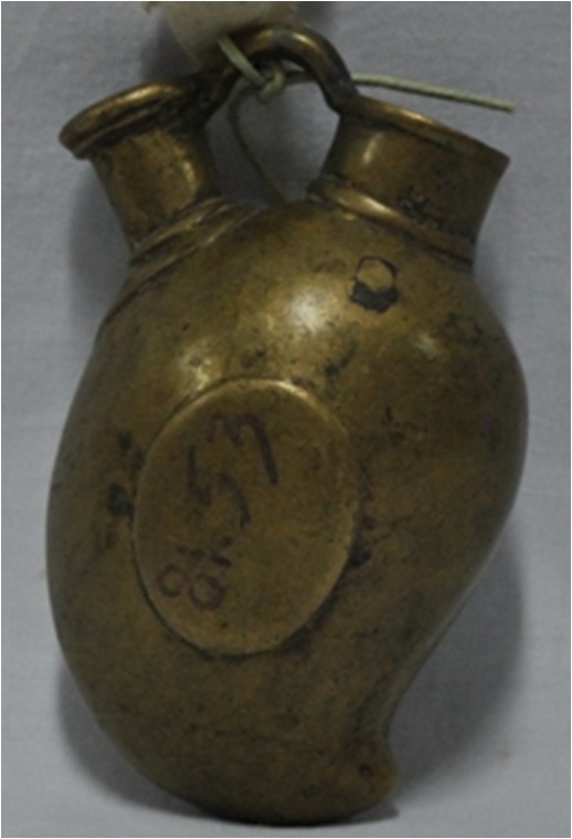 Brass Hukka in mango shape. It is base of hukka. Neck and spout is joined with a handle.
