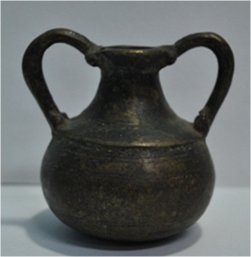 Probably on ink pot with double handle. The neck is narrow and open. The ink pot is with any design.