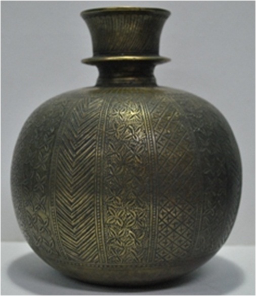 One Hukka Base Metal It is hollow within. There are screws with in the head of base to fix the upper part of the hooka in it. The outer portion is decorated with different designs in vertical.