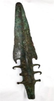 The forepart has sharp edge on both sides which tapper & makes the appointed end. The other part is round with barbit projections on the sides.