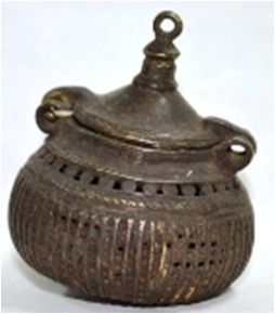 A round vessel with a lid. At the top is a small knob.