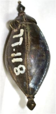 Brass vessel Its shape is similar to the one noted above. It has a lid with a hinge.