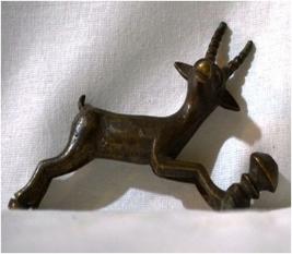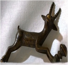 It seems to be a part of some other brass object. At the end of the hind legs, there is disc like form with an end which suggests the above observations and deduction. It is not as cast object rather two pieces cut rounded and welded to gather. The use of which cannot be told with certainty.