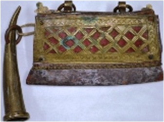 Ranka and a tube of copper for keeping bhujloo . It is a fire making instrument. The spark thus creates helps the bhujloo catch fire. Mostly the gaddis make use of the Ranka and the Bhujloo.