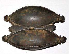 It was most probably not used as lamp but for keeping aspirins objects used in rituals of worship. Except for bead like decoration at the top & simple kundes at the end, there is no other decoration ornamentation on it.