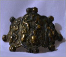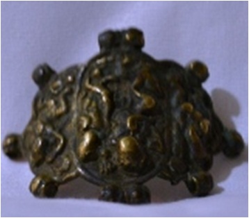It is divided in to three parts. The centre part shows the figures of Shiva & Parvati, Shiva is shown with four hands, holding damroo & trident in the upper right left hand to the lower right hand seems to be in abhaya mudra. Parvati is shown standing in his left. The figure of Ganesh is shown at the left part the right portion contains the figure of Hanumana.