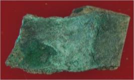 | Description / विवरण | Trench WG 2, layer 6, depth 45-51 cms It is a piece of copper. One end is folded and other is damaged. Surface is rough and deposition of hard patina. |