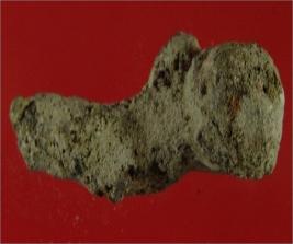 | Description / विवरण | Trench XF 3 , Qdt 1, layer 22, depth 1150-1250 cm It is an iron piece. Thick at one end. Tapered towards other side and curved a little. |