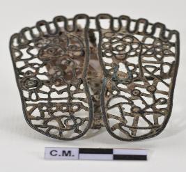 | Description / विवरण | Miniature sectarian stamp delineating the feet of Vishnu . |
