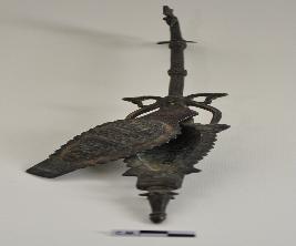 | Description / विवरण | Antimony Container with a peacock lid on the top of the container. |