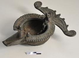 | Description / विवरण | Stylised lamp used for ritualistic purpose. Small chain for suspending it from the top. |