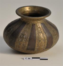 | Description / विवरण | Miniature Kalasa decorated with various floral motifs on the exterior surface. |