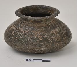 | Description / विवरण | Miniature votive lota.The exterior surface bedecked with human ,animal and geomatric motifs. |