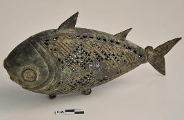 | Description / विवरण | Bronze Decorated item in the shape of a fish in filligre work. |