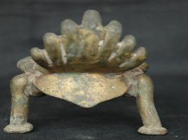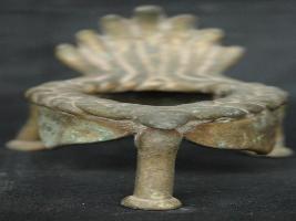 | Description / विवरण | A well decorated congshell stand, with three legs stand is used as ritualistic object. A thin layer of patina is shown in the lower portion. |