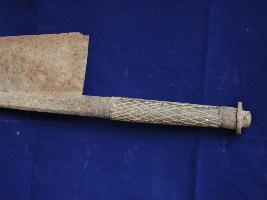 | Description / विवरण | A kharga with wooden handle is used as armament. |