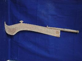 | Description / विवरण | A kharga with wooden handle is used as armament. |