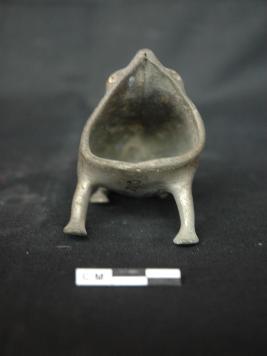 | Description / विवरण | A small silver frog with opened mouth. |