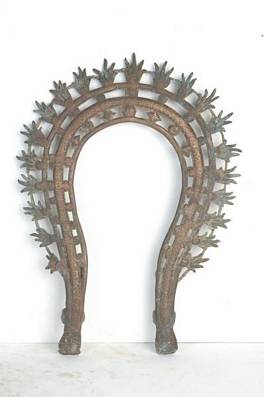 | Description / विवरण | Horse shoe shaped back support of a image with flames around it. |