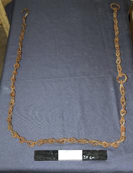 | Description / विवरण | Iron chain with circular ring on one side and hook on the other side with a circular ring in the Chain. |