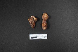 | Description / विवरण | These are fragments of iron nails. There are two nails of different sizes. The nail heads are intact. The tip of the bigger fragment is broken. They are extremely fragile. They are fully rusted. They have corroded rough surfaces. |