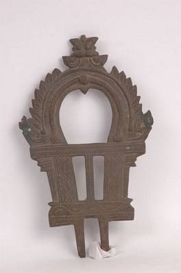 | Description / विवरण | Back part of a throne decorative with incised dot. There is a dragon at the top. There are also hoods below. |
