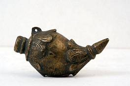 | Description / विवरण | Conch shaped suradani. It is decorated with leafy forms on both ends. A small projection near the mouth on side with a hole suggests that this object had some more components that were lost . |