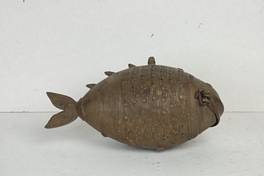| Description / विवरण | A fish type hollow pot with lid at the mouth of it. |