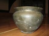| Description / विवरण | This is a vase, having a carinated body. Lower part is conical and with a narrow circular base .Neck has a groove and oliquely flaring plain rim. It looks black due to loss of its shining. |