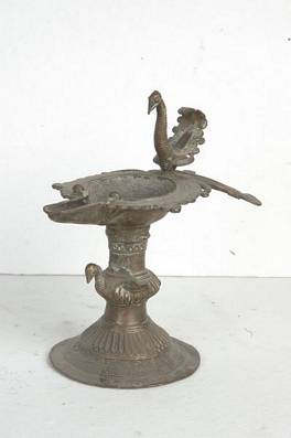 | Description / विवरण | Indian lamp with bird stand and one bird peacock at the top. |