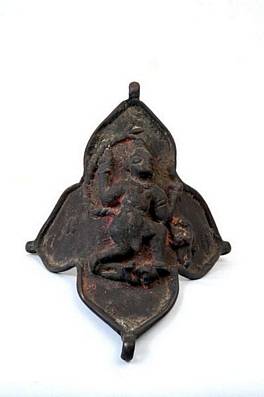 | Description / विवरण | Leaf shaped carved object having the figure of Hanuman carved in the centre. |