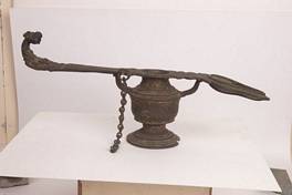 | Description / विवरण | Doopdan with pot shape base. A chain is seen hanging. |