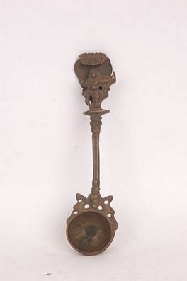 | Description / विवरण | A achamani spoon like used for ritual purpose. The tip of the handle depicts dancing Krishna under Shesha naga hood. |