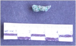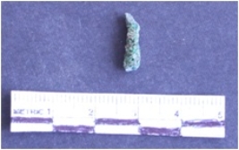 | Description / विवरण | It is a corroded copper object, it looks like a leg fragment of a copper figurine. Grreenish in color. |