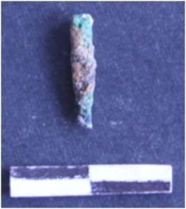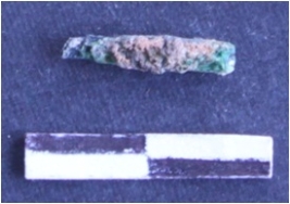 | Description / विवरण | It is a broken piece of a copper rod, badly corroded fragment. Emboded with some soil particles. Greenish in color, circular in section. |