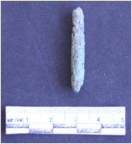 | Description / विवरण | It is a riddle up copper piece, completely corroded. Greenish in color and some soil particles was emboded on the surface. |